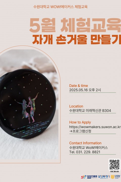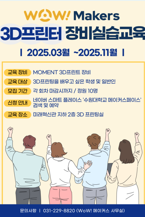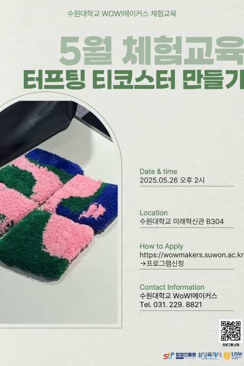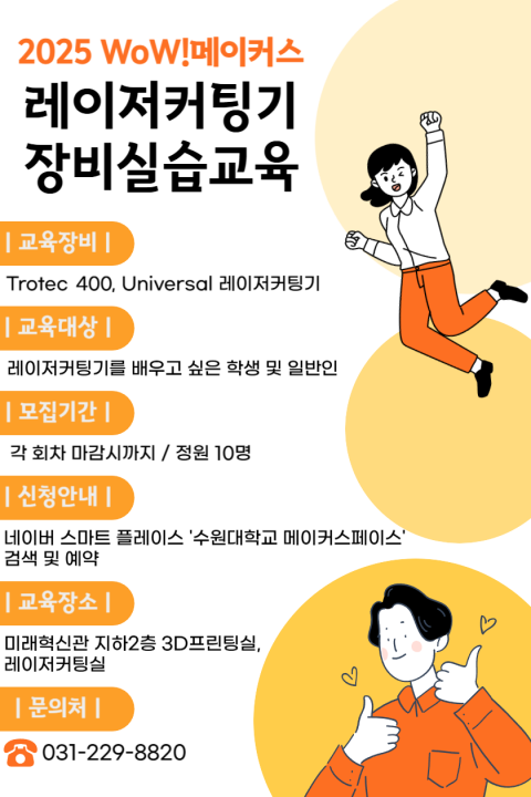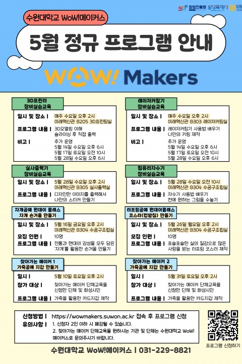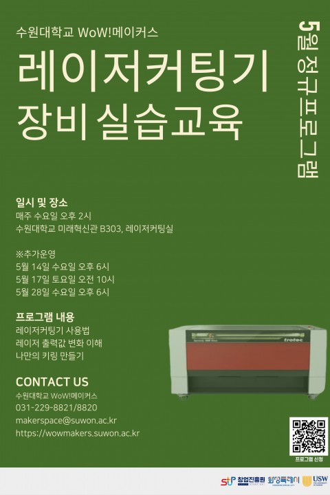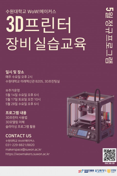 E-mail : makerspace@suwon.ac.kr    Address : 경기도 화성시 봉담읍 와우안길 17, 미래혁신관 516호