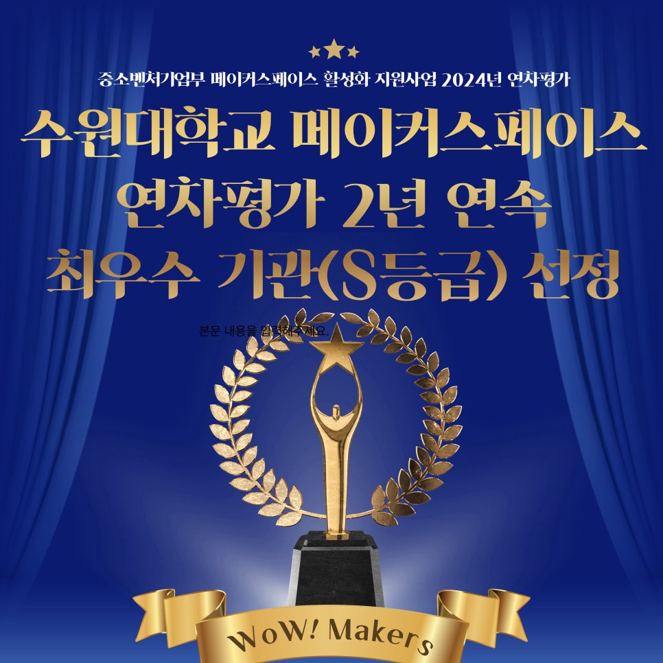 수원대학교 WoW!메이커스, 2024년 메이커스페이스 연차평가 S등급 획득!