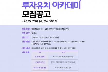 Tel : 031-229-8820 Fax : 031-229-8575 E-mail : makerspace@suwon.ac.kr Address : 경기도 화성시 봉담읍 와우안길 17, 미래혁신관 516호